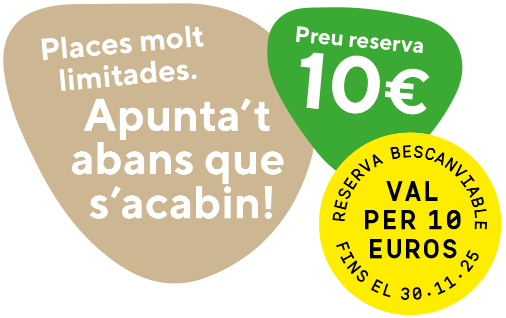 Si ja no queden places i només t'has apuntat a llista d'espera, NO cal fer el pagament (nosaltres t'avisarem si hi ha alguna cancel·lació)Data Taller Apivita -> Dimecres 29/10/25El val de 10€ només s'entregarà a les persones que assiteixin al taller.Data límit possibles cancel·lacions: Diumenge 26/10/25 (passada aquesta data NO es retornarà l'import de la reserva)